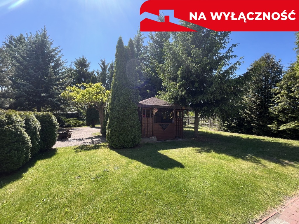 - za domem na działce ustawiony jest garaż wolnostojący na jedno miejsce postojowe o pow. 20 m2 oraz pomieszczenie na opał o pow. 9 m2, altanka oraz huśtawka. Działka z nasadzeniami krzewów i drzew.