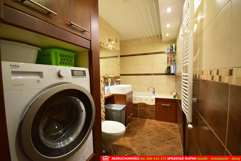 - piękna duża łazienka z WC: glazura, terakota, wanna, umywalka, pralka;