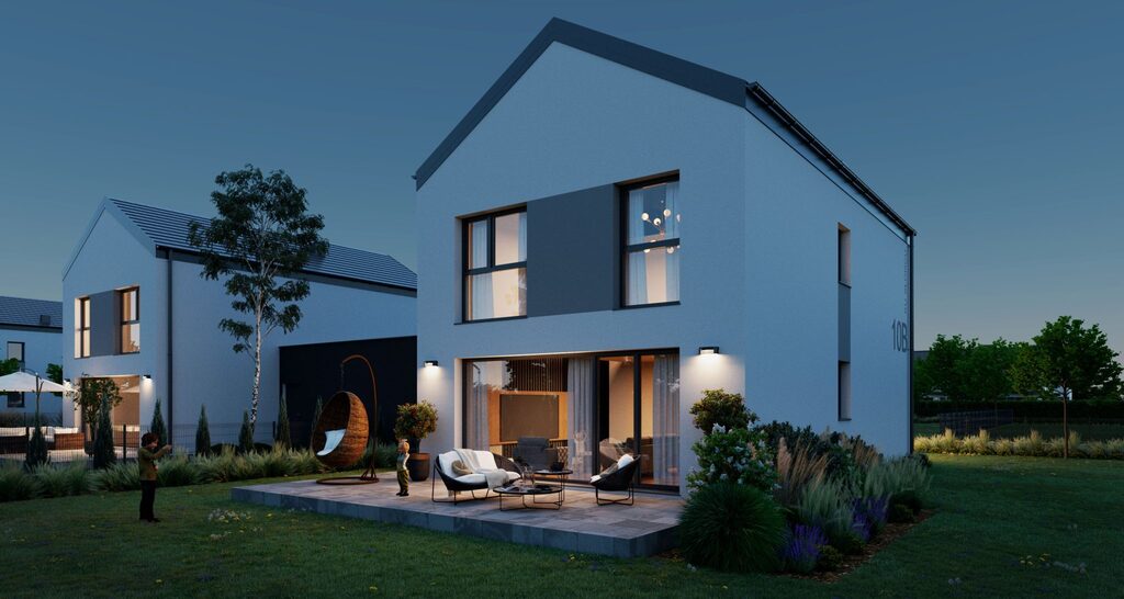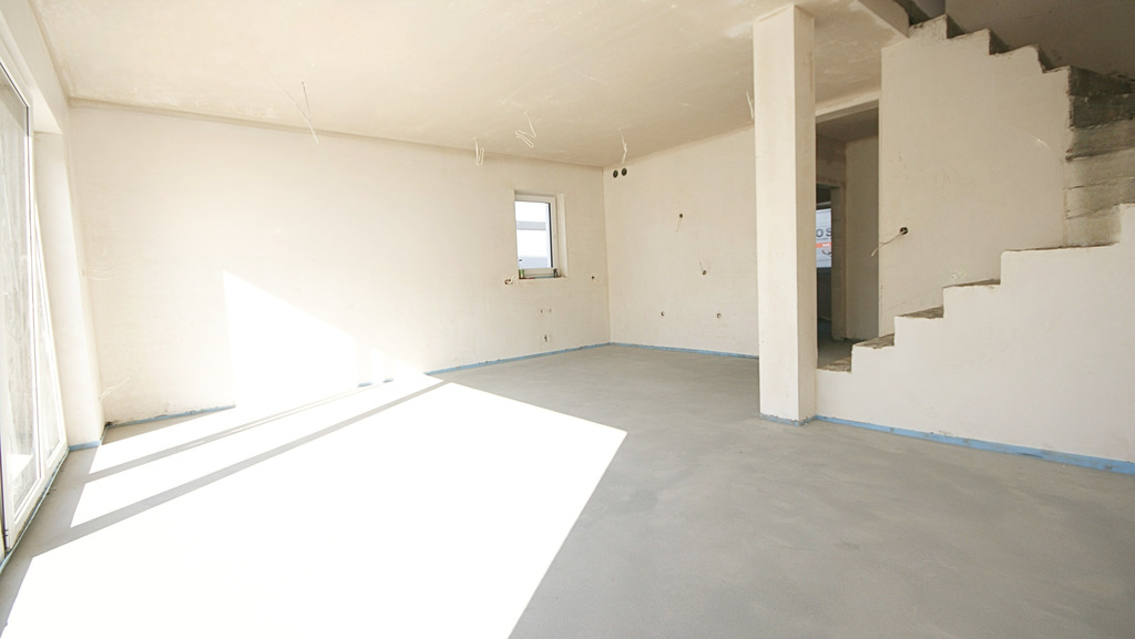 - stan deweloperski z gotowymi instalacjami ( wody, szamba, elektryczną wewnątrz, pompa ciepła Daikin, z ogrzewaniem podłogowym w całym budynku, wentylacja grawitacyjna, wyprowadzenie instalacji pod domofon i alarm, światłowodu, klimatyzacji, jak również instalacja napędu bramy garażowej oraz zewnętrznej), gotowe tynki na zewnątrz i wewnątrz
