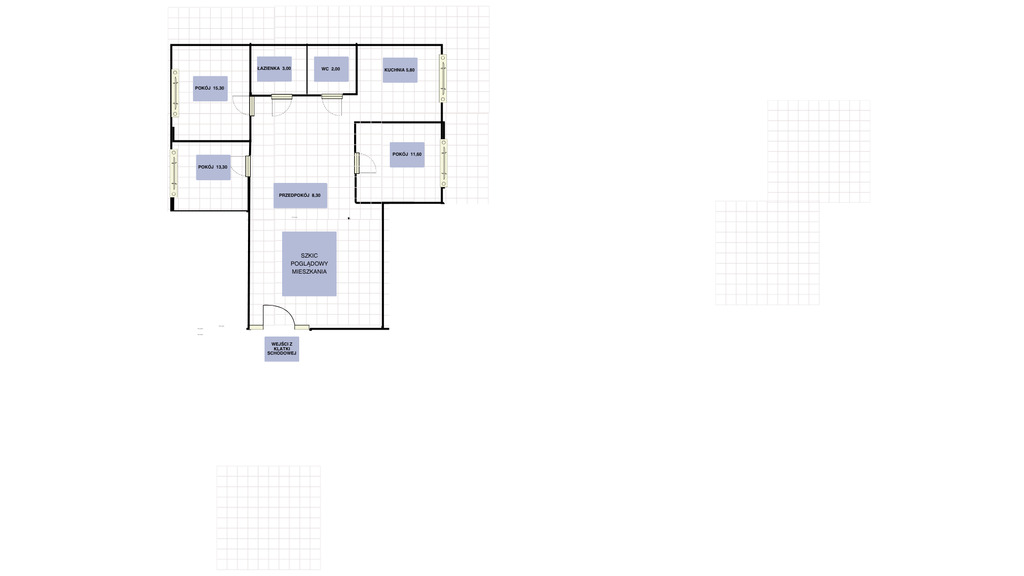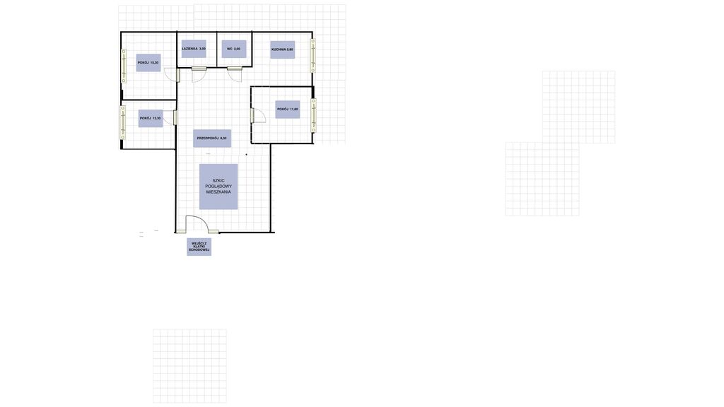 ┣━ Wszystkie pokoje z osobnym wejściem z przedpokoju