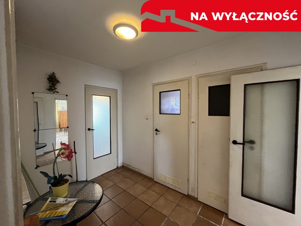 - większy dom drewniano-murowany pokryty blachodachówką. Składa się z tarasu przed wejściem o pow. 7,5 m2, przedpokoju o pow. 3 m2, korytarza o pow. 6,5 m2, kuchni o pow. 7,5 m2, łazienki z prysznicem o pow. 3 m2, pomieszczenia gospodarczego o pow. 2 m2 i dwóch pokoi o pow. 22,5 m2 oraz 22 m2. Jest też wejście na strych. Dom ogrzewany na dwa sposoby tj. piec węglowy na paliwo stałe (węgiel i inne) oraz elektryczne. Ciepła woda z CO własnego. Kotłownia jako osobne pomieszczenie o pow. 2,2 m2 z osobnym wejściem z podwórka.