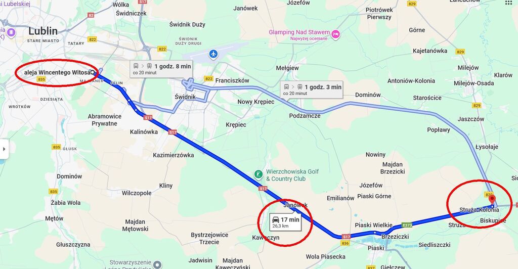 - odległość od Lublina (Al. Witosa- FELICITY) to tylko 26 km i ok. 20 minut.