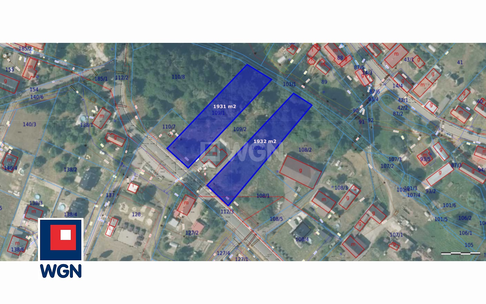 Oferuję na sprzedaż dwie duże, osobne działki pod zabudowę jednorodzinną o powierzchni 1931 m2 i 1932 m2, położone w miejscowości Komorniki, gmina Polkowice.