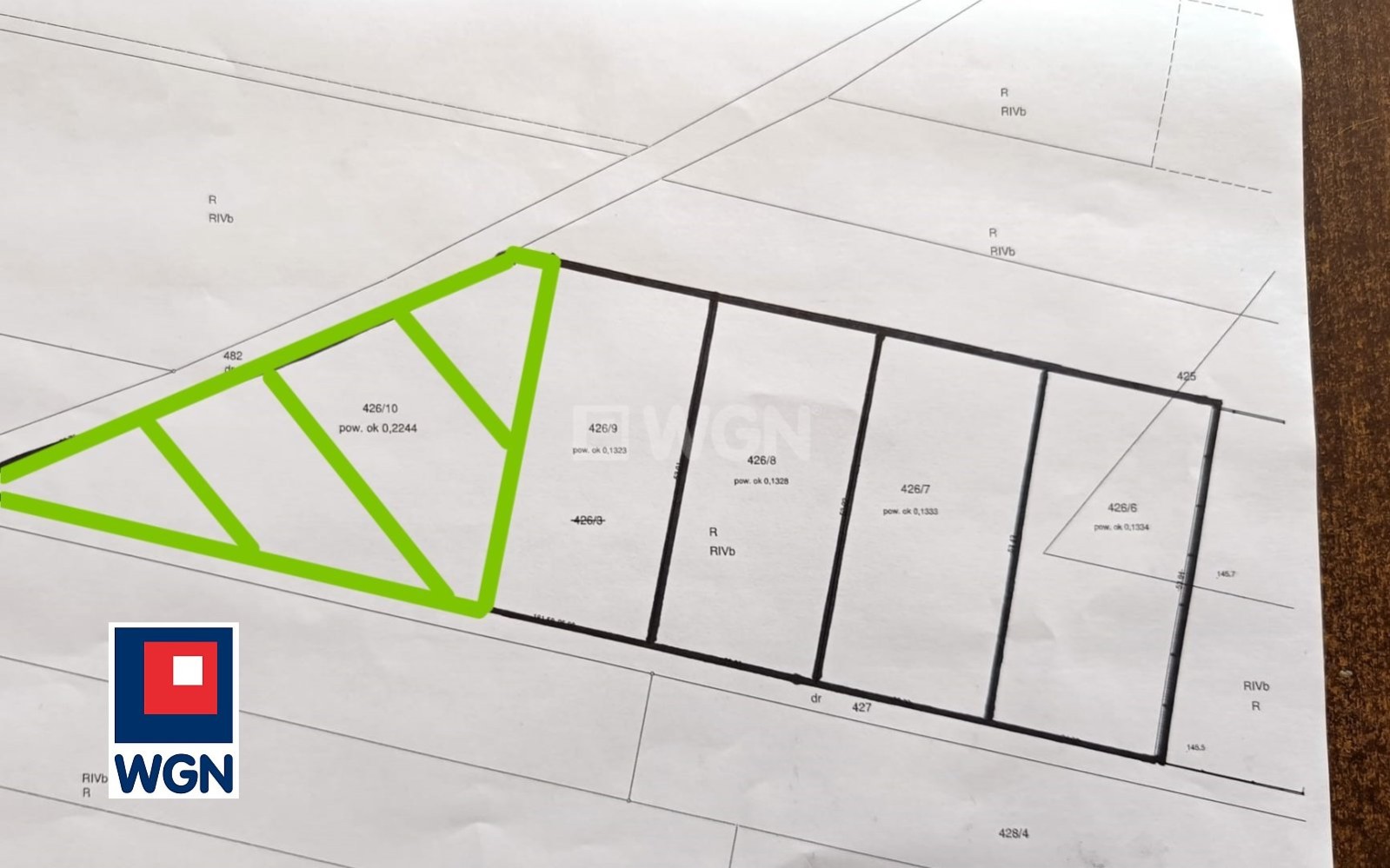Działka powstała z podziału gruntu nr 426/3, jednakże nie naniesiono jeszcze aktualizacji na portalach (podział z mapy Geoportal 2 wykonany orientacyjnie według aktualnych dokumentów geodezyjnych).