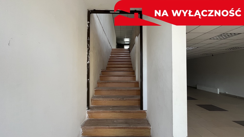 - na piętro budynku prowadzi klatka schodowa o szerokości 1,3 m. Piętro to sala sprzedażowa o pow. 128 m2 i wymiarach 8 m na 16 m. Sala bez ścian działowych z możliwością aranżacji według własnego pomysłu (ewentualne wykorzystanie na cele mieszkaniowe).