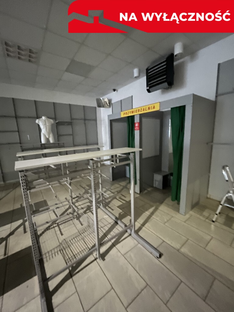 -obiekt wyposażony w halę sprzedaży o pow. 164,5 m kw. i wymiarach 23,5 m długości i 7 m szerokości. Na hali znajdują się dwie przymierzalnie oraz szereg metalowych regałów i stojaków .