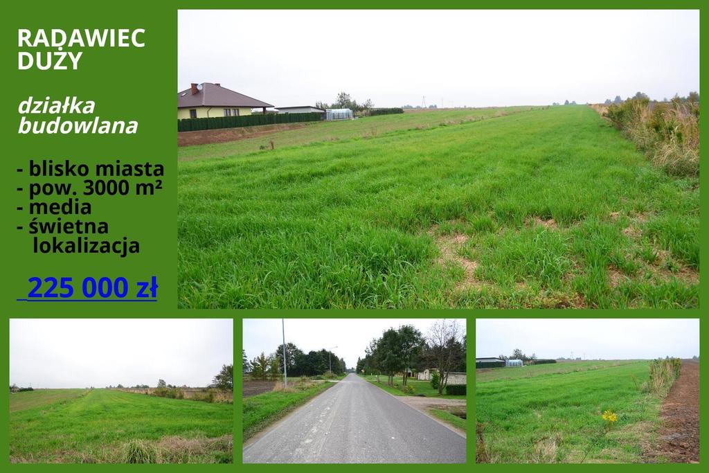 RADAWIEC DUŻY: atrakcyjna, słoneczna, duża działka budowlana o pow. 3000 m2. Działka zlokalizowana w 1 linii zabudowy. Wydane aktualne warunki zabudowy (WZ) dla zabudowy mieszkaniowej zagrodowej. Przy/ na działce wszystkie media. Bardzo blisko do przystanku. Świetna lokalizacja, tylko 6 km (6 min) do granicy miasta Lublina. Idealne miejsce do wybudowania wymarzonego domu. W pobliżu nowo powstające domy jednorodzinne. POLECAM - DOBRA CENA !.