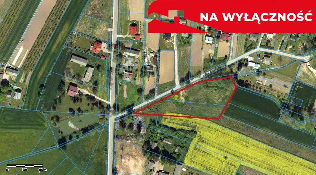 - nieruchomość na sprzedaż to dwie działki położone obok siebie wzdłuż drogi asfaltowej (pow. 30 ar I 34 ar)