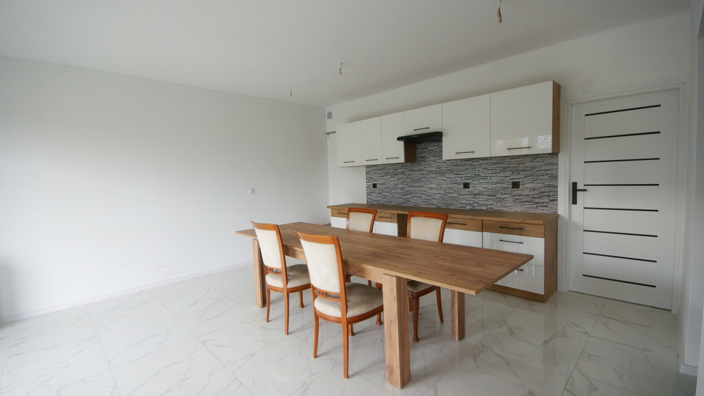 - na poziomie zero częściowo ułożone płytki podłogowe oraz rozpoczęto wykonanie zabudowy meblowej kuchennej