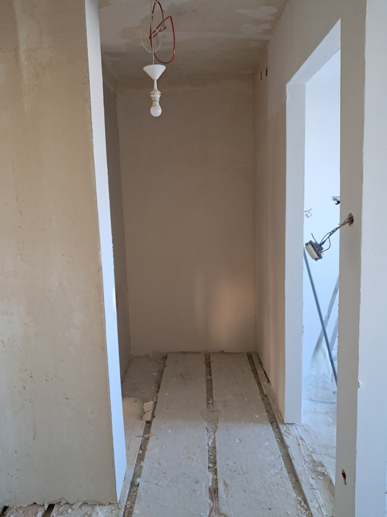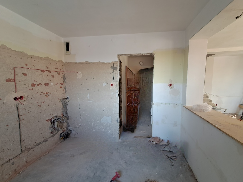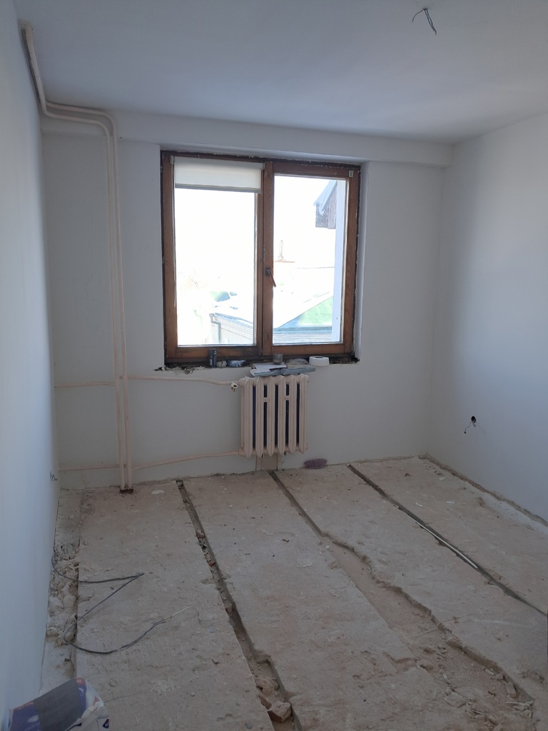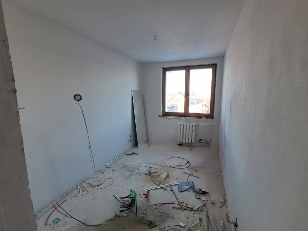 - w mieszkaniu zostały skute podłogi i płytki na ścianach. Zostało doprowadzone do stanu niemalże deweloperskiego. Zostały wymienione instalacje.