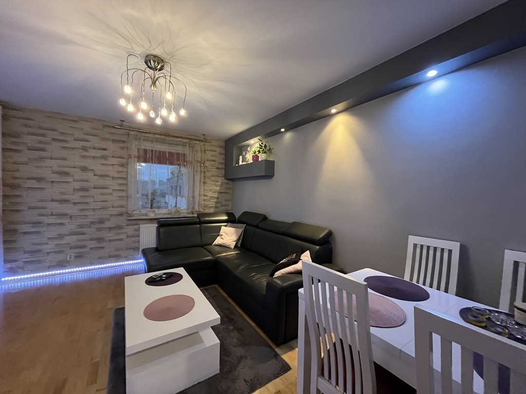 - w mieszkaniu wykonano malowanie ścian, w salonie na ścianach wyłożono kamień dekoracyjny oraz wykonano podwieszony sufit i ledowe podświetlenie.