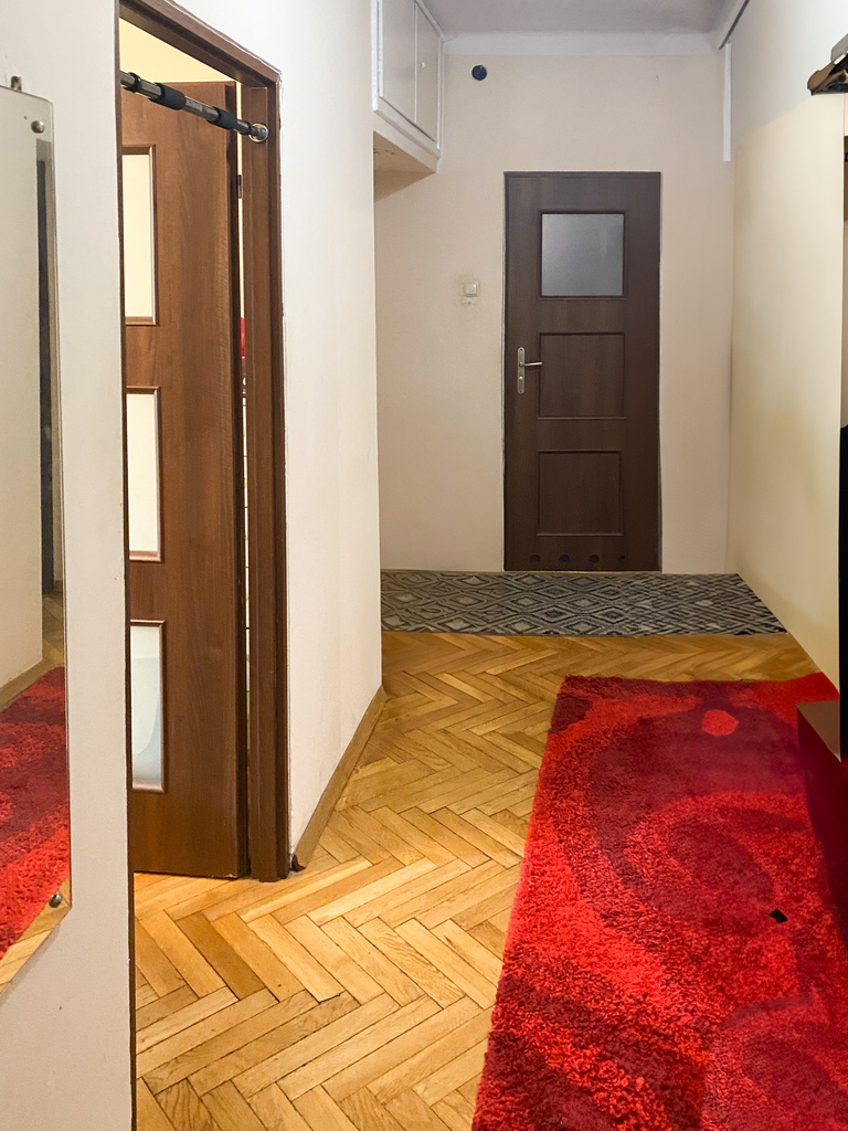 - Pomieszczenia: dwa osobne pokoje, kuchnia, łazienka z WC oraz przedpokój