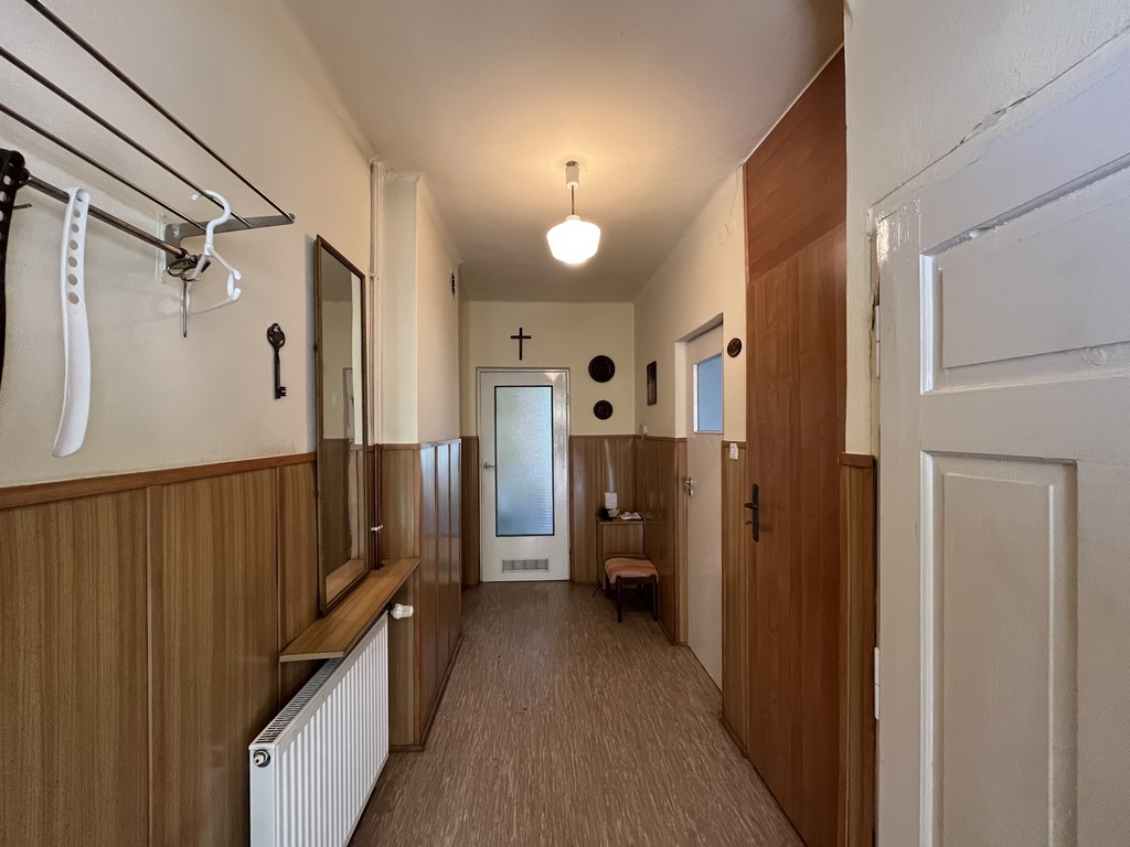 -na piętrze znajdują się trzy pokoje 12 m kw, 12 m kw, i 14 m kw, korytarz o pow. 7 m kw, oraz łazienka 5 m kw.