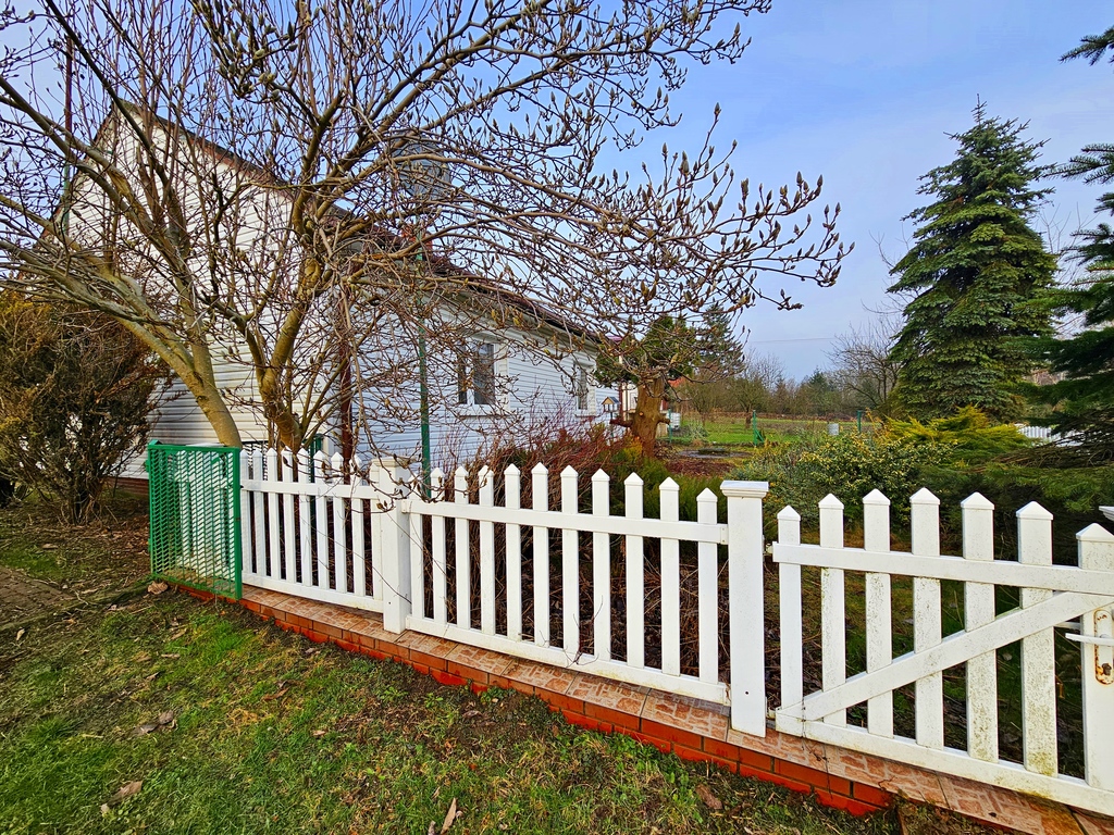 Parterowy budynek drewniany z 1950 roku, o wymiarach ok 8 m x 10,5 m. Składa się on z dwóch pokoi, kuchni, łazienki, przedpokoju oraz ganku. Dodatkowo dom jest częściowo podpiwniczony. Nieruchomość ta została wyremontowana i jest cały czas użytkowana. Budynek jest ocieplony supremą i pokryty onduliną. W budynku rozprowadzone jest centralne ogrzewanie, podłączone do pieca gazowego, jednakże w domu znajduje się również piec na ekogroszek i pompa ciepła - możliwość przełączenia, a w podpiwniczeniu został zamontowany także bojler elektryczny na ciepłą wodę. Obok zabudować postawione zostały na stelażu panele fotowoltaiczne redukujące rachunki za prąd. Całość nadaje się do zamieszkania bądź odświeżenia połączonego z wykonaniem własnych aranżacji wnętrz.