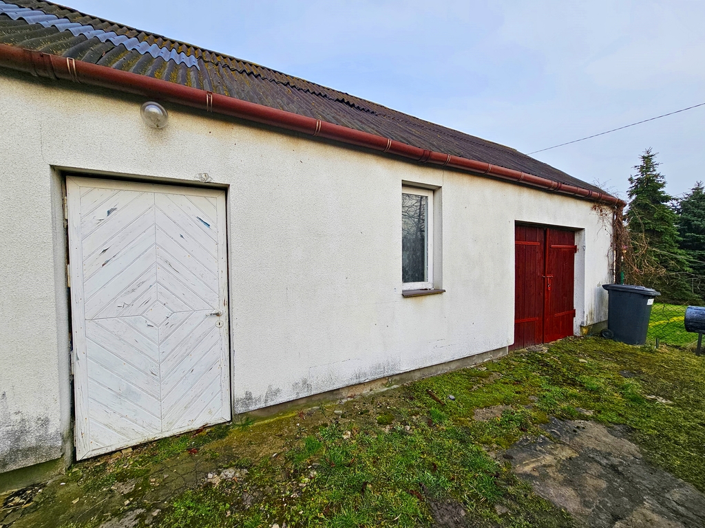 Budynek o powierzchni około 92 m² z wymienionym dachem (ondulina) i wykonaną elewacją (bez docieplenia). Wnętrze podzielone na trzy pomieszczenia, częściowo wymagające remontu i dostosowania do własnych potrzeb. W tym budynku znajduje się garaż wraz z kanałem i podnośnikiem.