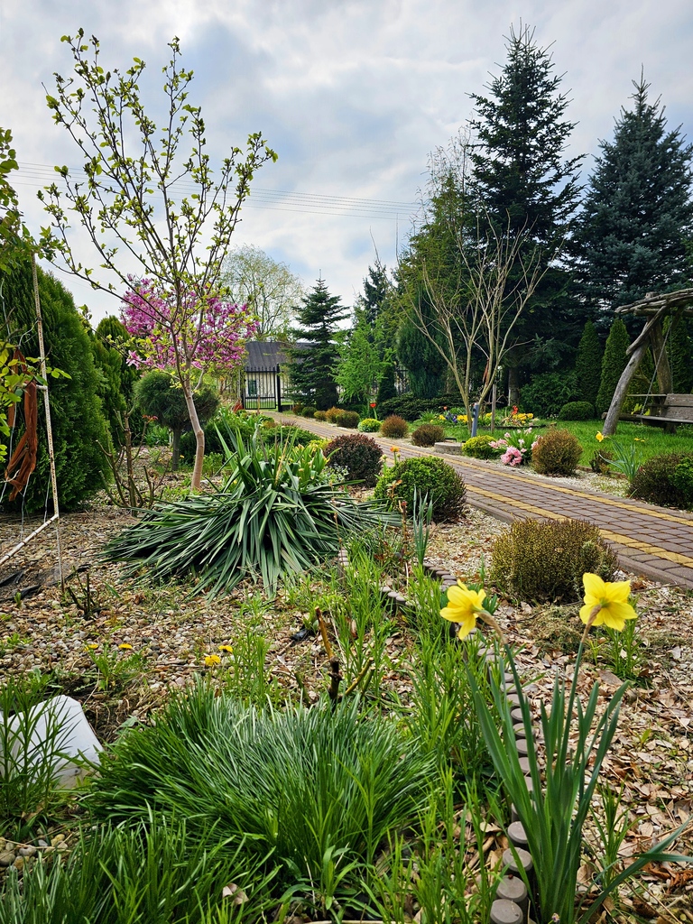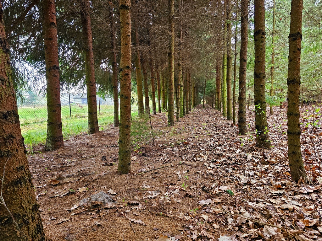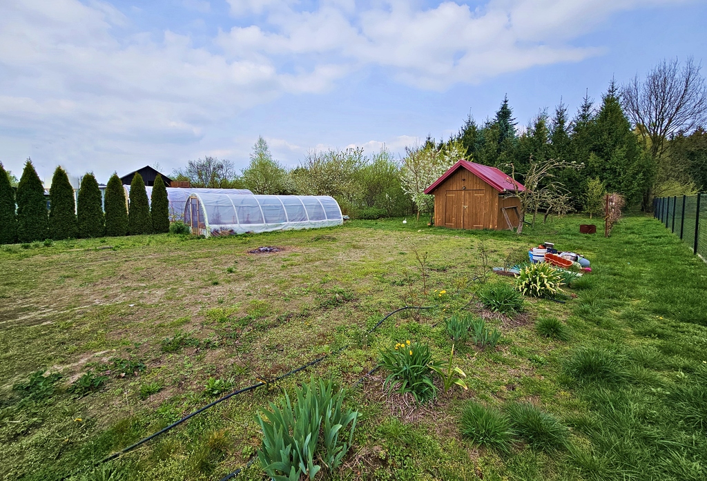 - nasadzenia: dużo drzew i krzewów ozdobnych oraz owocowych a w tylnej części działki około 11,5 ar lasu iglastego