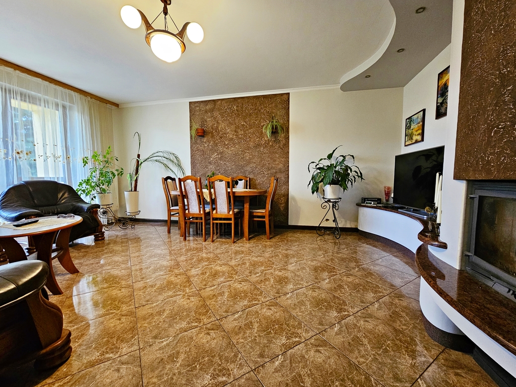 - wyremontowana i wykończona przestrzeń miesząca min duży salon z kominkiem z wykończeniem z kamienia