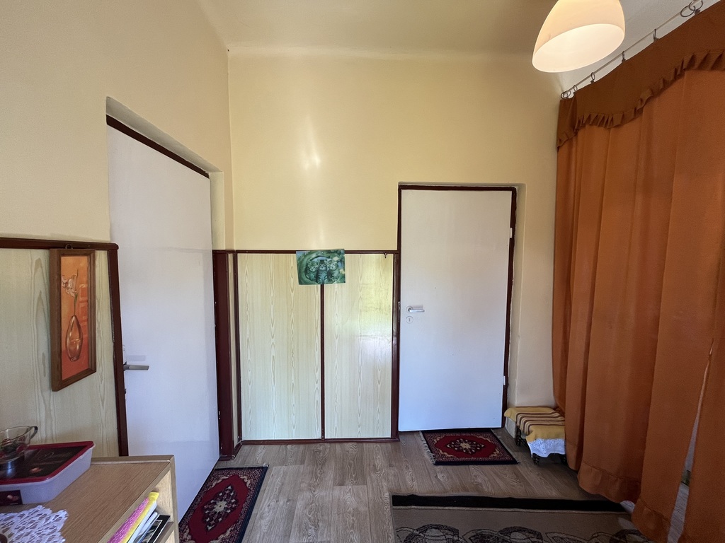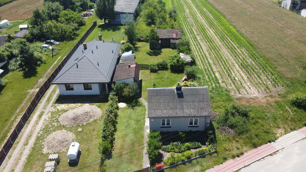 -dom składa się z przedsionka o pow. 7 m2, pokoju z kuchnia kaflowa (można dostosować jako pomieszczenie kuchni) o pow. 16 m2, drugiego pokoju o pow. 16 m2 oraz trzeciego pokoju o pow. 9,5 m2. Podłogi w części budynku drewniane z desek w części wylewki pokryte linoleum. Okna plastikowe. Budynek w dobrym stanie.