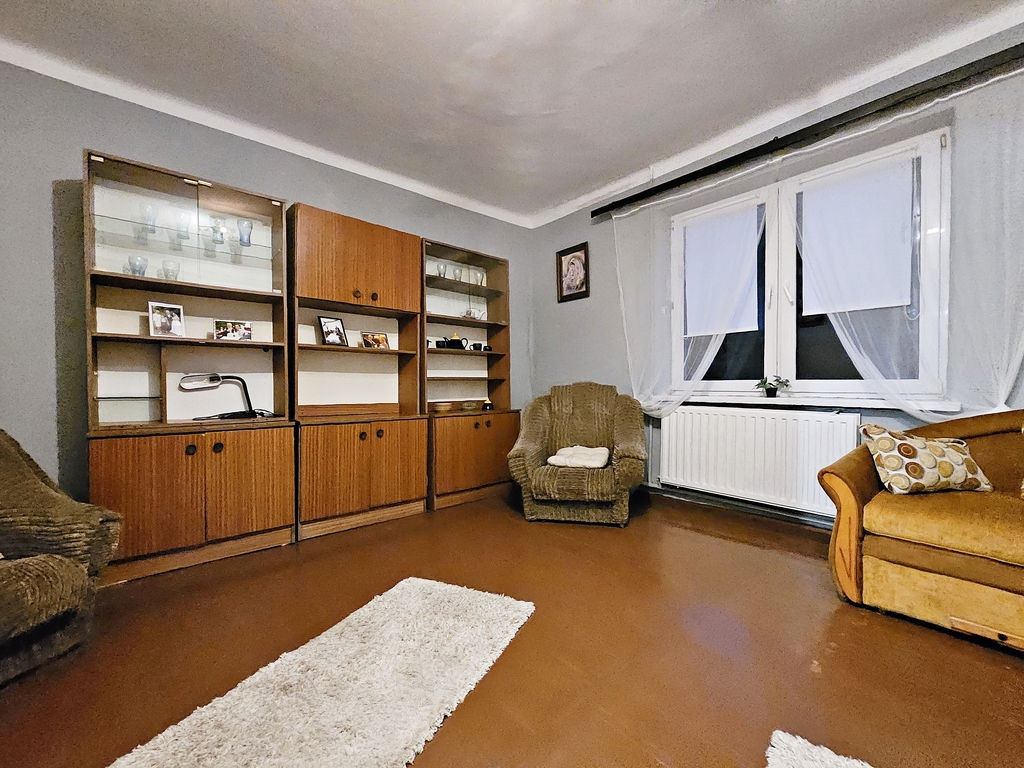 Parterowy budynek murowany z 1965 roku, o wymiarach ok 8,5 m x10 m. Budynek składa się z dwóch pokoi, kuchni, łazienki, spiżarni oraz przedpokoju i ganku. Dodatkowo dom jest częściowo podpiwniczony (pow. piwnicy wynosi około 30m²). Budynek pokryty jest eternitem i posiada wstawione nowo okna PCV. Nie posiada docieplenia. Obecnie w domu nie ma pieca, jednakże we wszystkich pomieszczeniach rozprowadzone jest centralne ogrzewanie, a do budynku doprowadzony jest gaz, co umożliwi szybką instalację "źródła ciepła". Całość wymaga gruntownego remontu, ale jest doskonałą bazą do stworzenia własnego lokum, według indywidualnych upodobań i potrzeb.