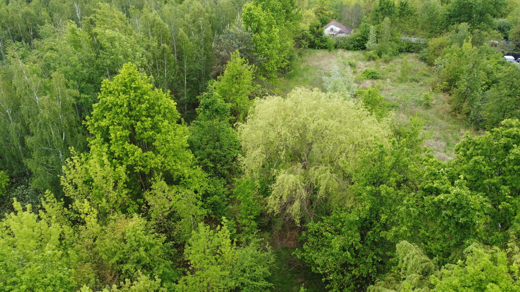 - Duża działka o pow. 4587 m2 składająca się z trzech odrębnych części wraz z budynkiem mieszkalnym o pow. 40 m2 na jednej z nich.