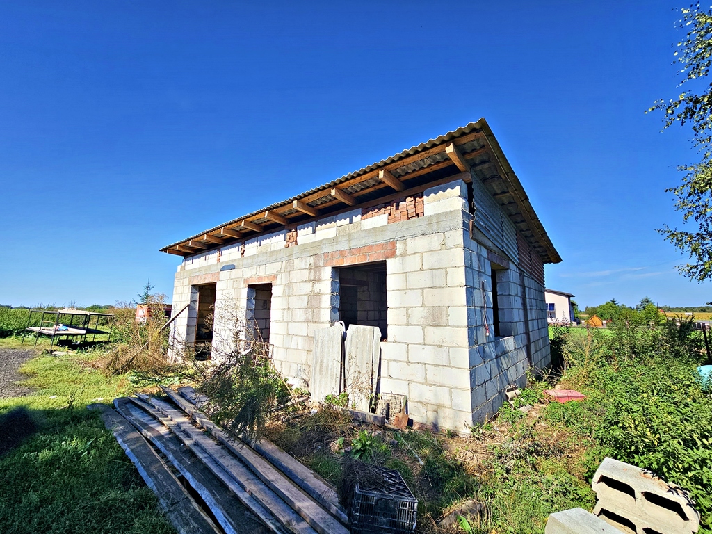 Wojciechów - nieduża działka z częściowo wybudowanym domem murowanym