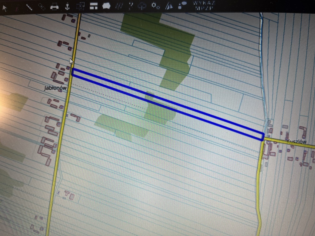 - działka z jednej strony przylega do drogi asfaltowej przez Jabłonów a z drugiej praktycznie do drogi asfaltowej przez Kuszlów.
