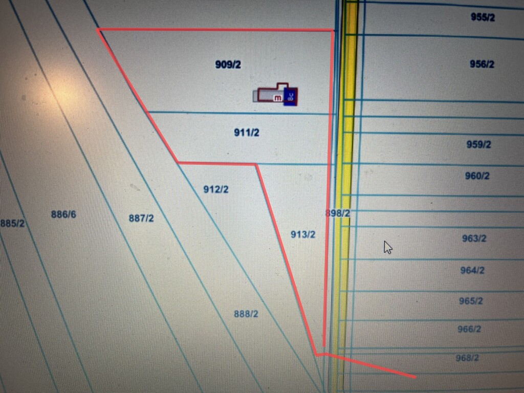 - działka o kształcie trójkąta o dłuższym boku długości 150 m wzdłuż drogi asfaltowej i krótszym o dł. 99m. Działka na lekkim wzniesieniu o płaskim terenie z pięknym widokiem wokół.