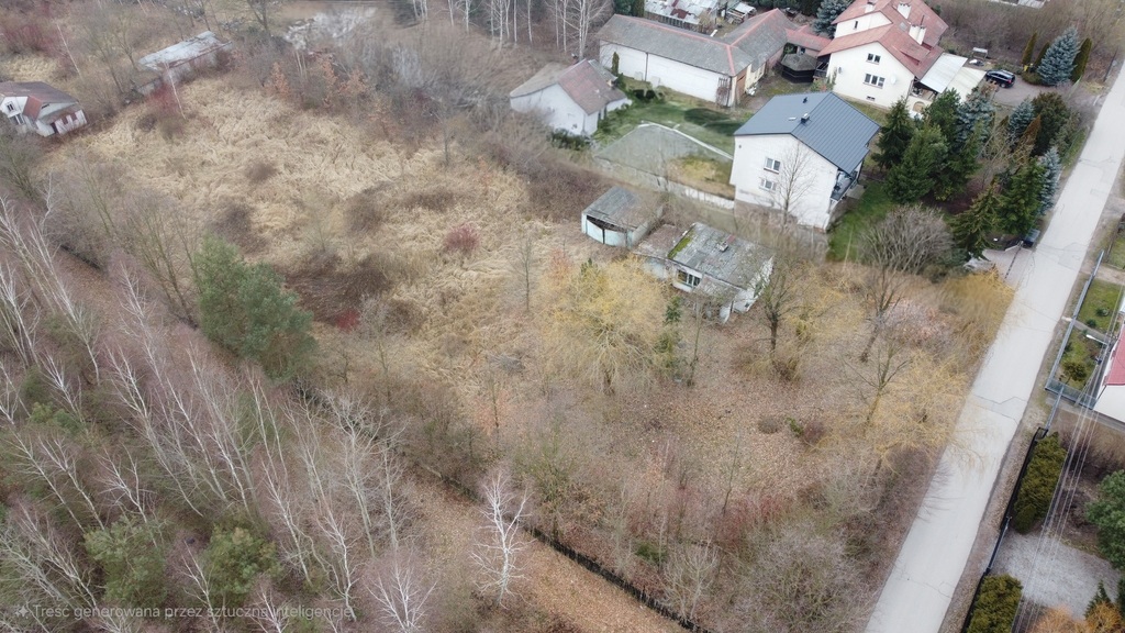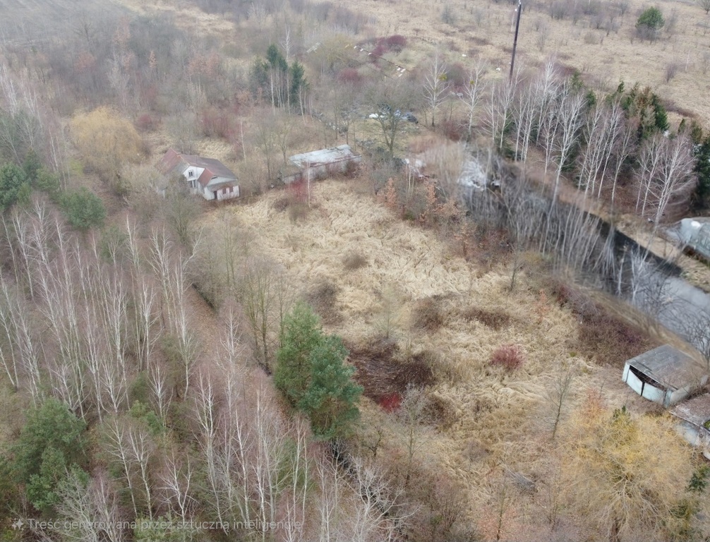 - Duża działka o pow. 4587 m2 składająca się z trzech odrębnych części wraz z budynkiem mieszkalnym o pow. 40 m2 na jednej z nich.