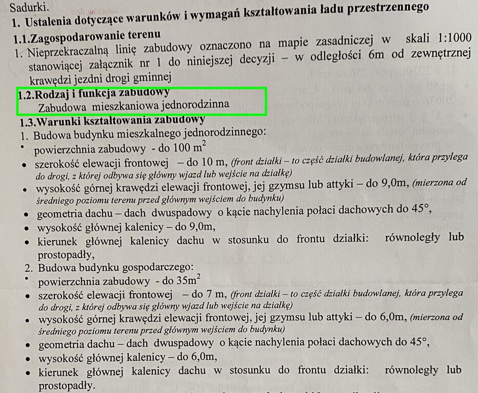 - możliwość budowy budynku mieszkalnego jednorodzinnego i budynku gospodarczego (patrz foto).