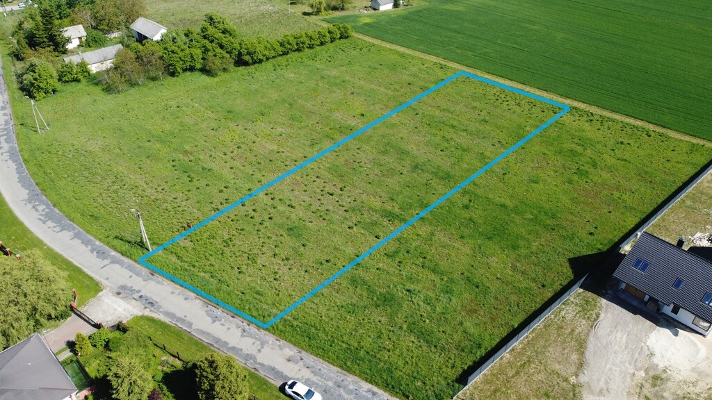 -działka o regularnym kształcie prostokąta o wymiarach 25 m szerokości i 100 m długości idealnie nadająca się do posadowienia domu.