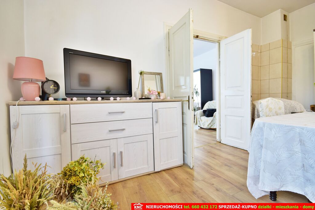 Mieszkanie 2 pokojowe o pow. 61,79 m² zlokalizowane na parterze w częśći domu wolnostojącego/kamienicy. W skład mieszkania wchodzą: 2 duże pokoje ( każdy po ok. 20 m²) osobna duża kuchnia, łazienka z WC, korytarz, piwnica. Nieruchomość ogrodzona z własnym wejściem/wjazdem do indiwidualnego korzystania z działki przed domem. Nieruchomość zlokalizowana w cichej, spokojnej dzielnicy domów jednorodzinnych zarządzana przez administratora. Niski czynsz. Pełna własność z księgą wieczystą. W pobliżu pełna infrastruktura handlowo -usługowa. POLECAM !