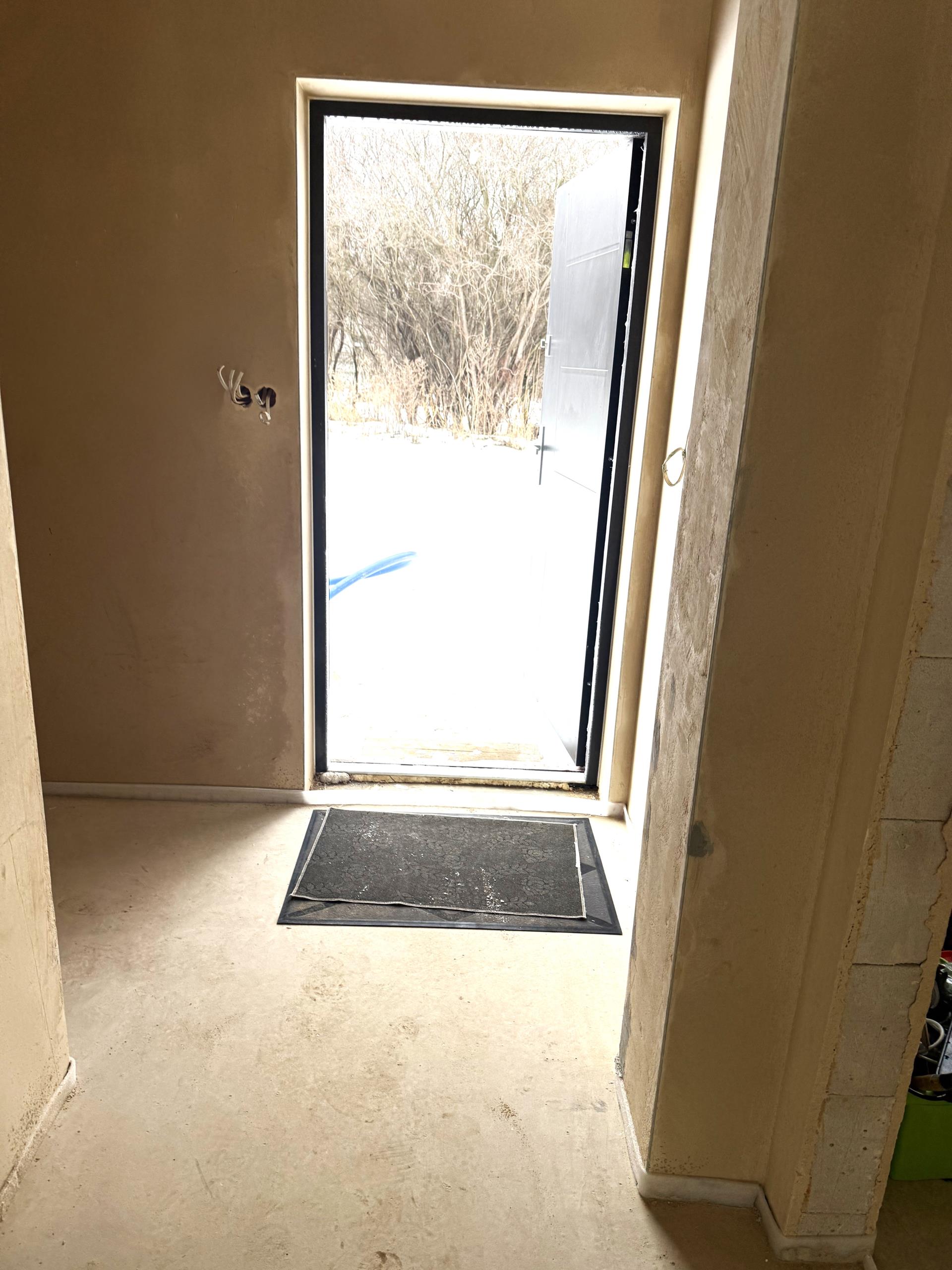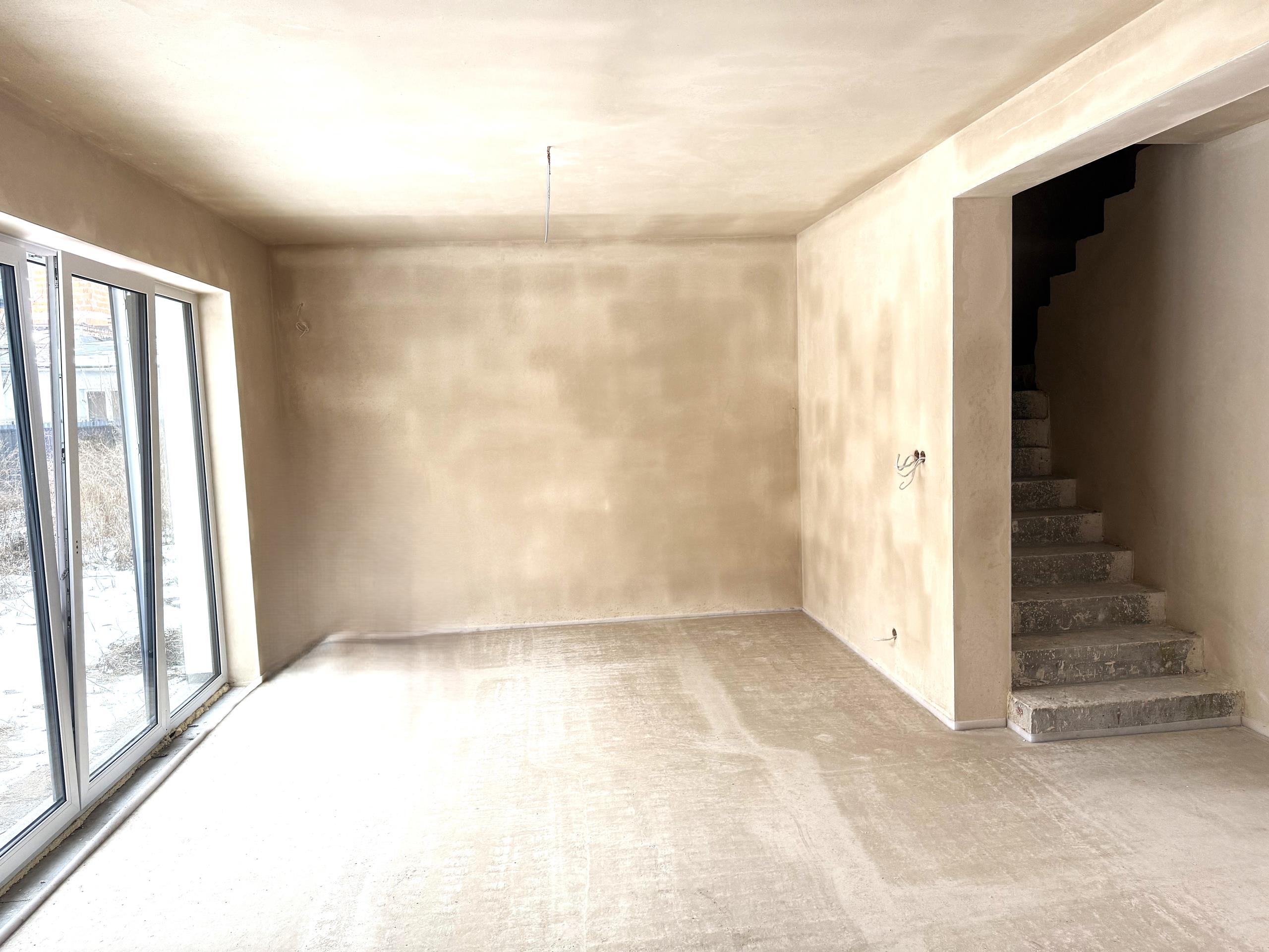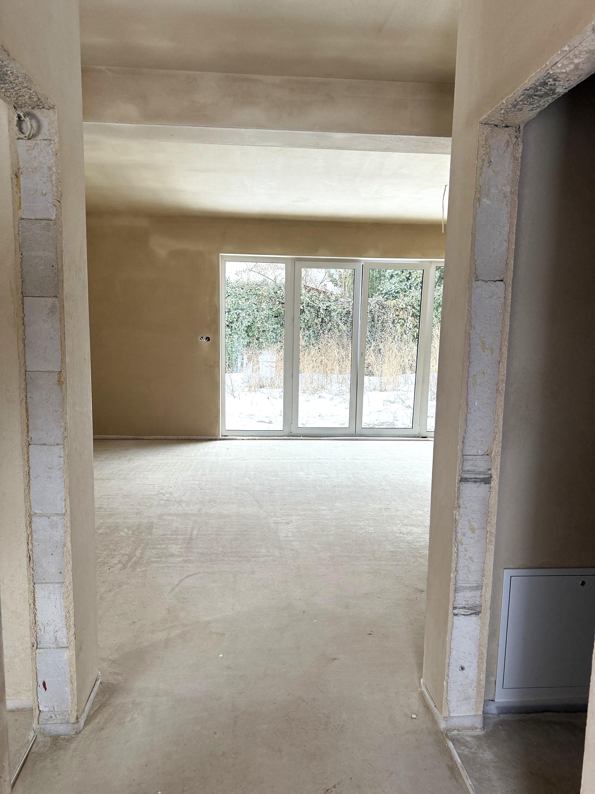 Lokal znajduje się na dwóch kondygnacjach + strych w stanie deweloperskim i ogródkiem. Odległość ogrodzenia do ściany od strony tarasu to 9m, z przodu domu 7m do granicy działki.