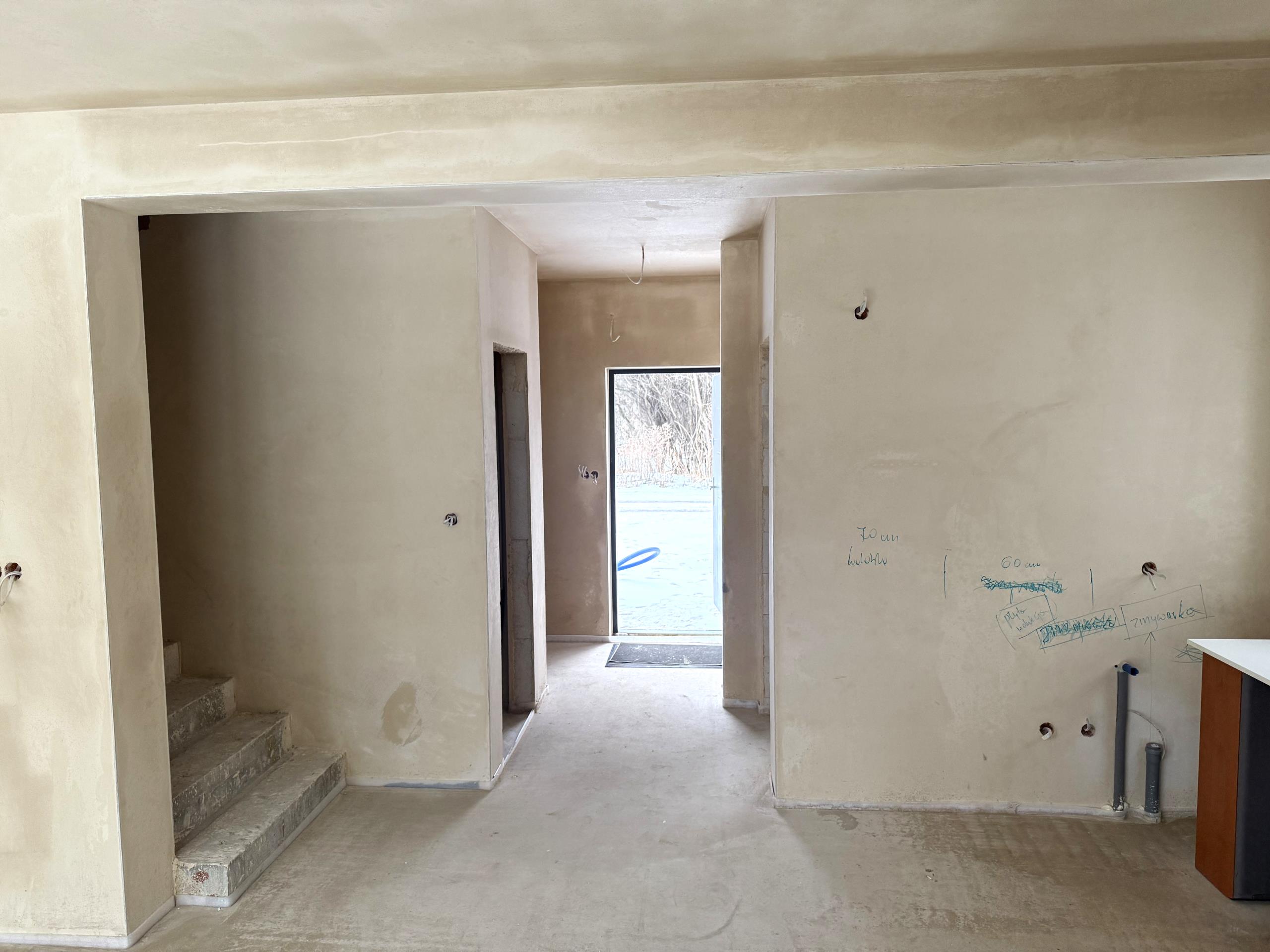 Salon 25,4m2 z jadalnią z wyjściem na ogród, kuchnia 6m2 otwarta na salon z oknem, hol 4,1m2, toaleta 1,5m2 Przedsionek 2,6m2, gabinet ok 8m2