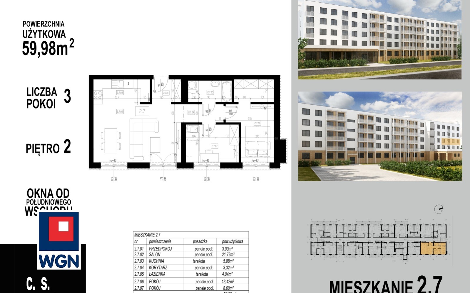 Na sprzedaż nowoczesne mieszkanie z windą w stanie deweloperskim, znajdujące się na II piętrze w budynku mieszkalnym (mieszkanie 2.7).