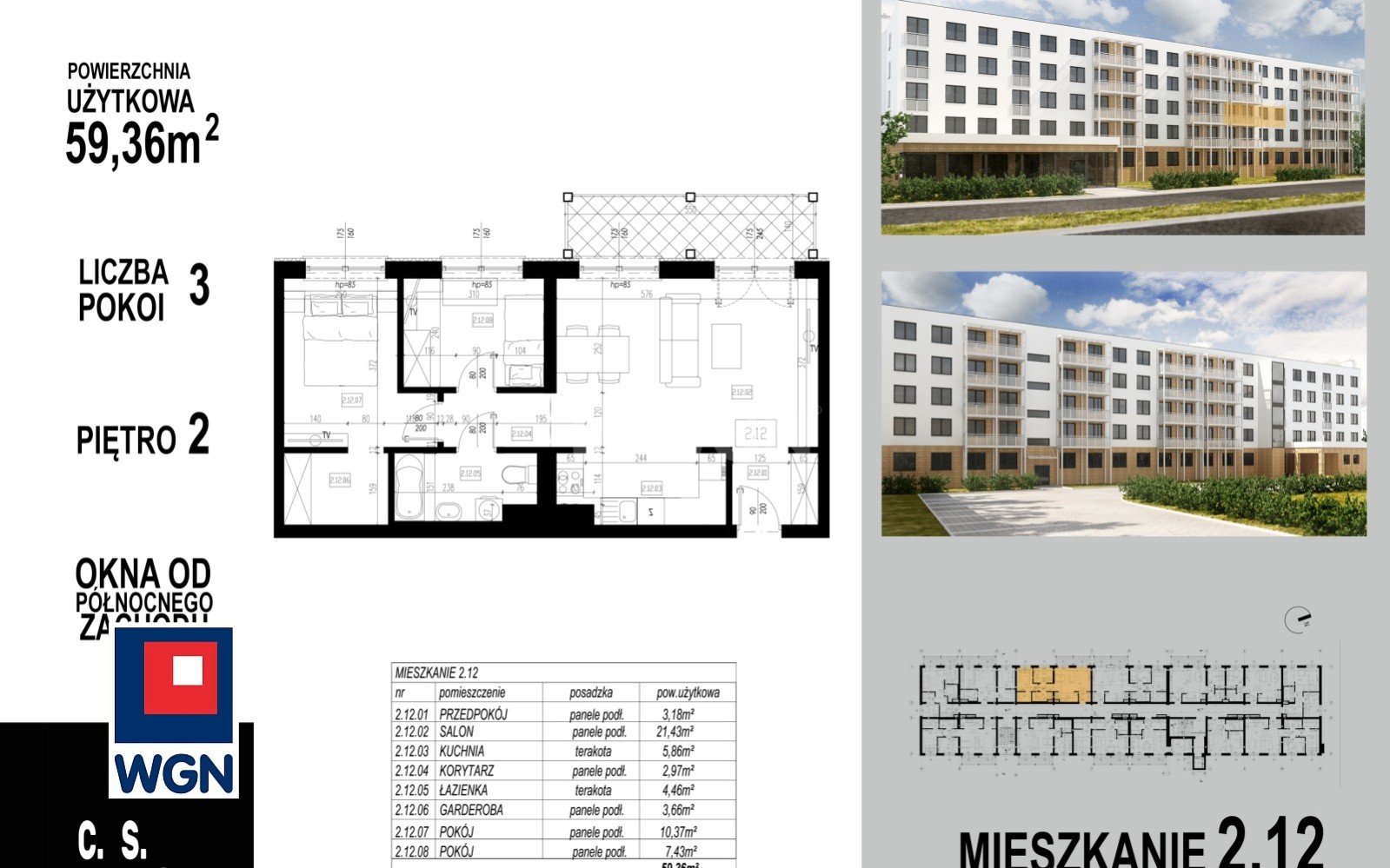 Głogów, mieszkanie, 3 pokoje, balkon, winda, 59,36 m2, sprzedam, 439264 zł.