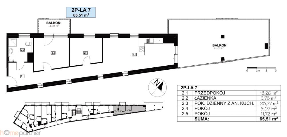 Do apartamentu przynależą 2 balkony 24,15 m2 oraz 4,65 m2