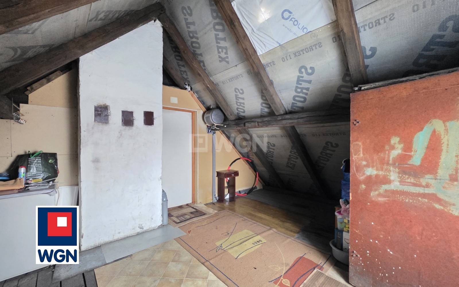 Na parterze znajduje się mieszkanie o powierzchni 49 m2 do generalnego remontu, na pierwszym piętrze mieszkanie o pow. 47,76 m2 do odświeżenia, na poddaszu wydzielony pokój o pow. 30 m2.