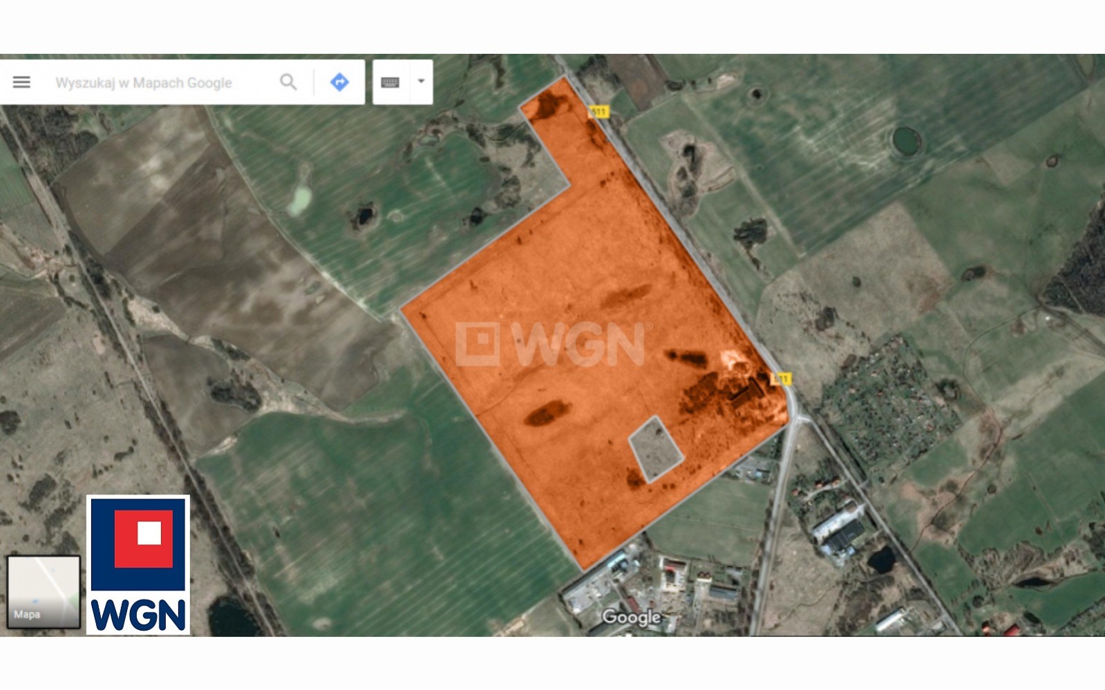 Duża działka inwestycyjna przy drodze wojewódzkiej.