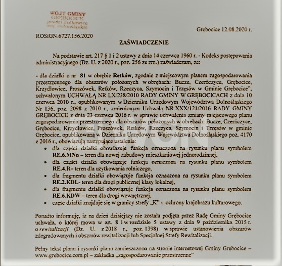 Na sprzedaż atrakcyjna działka budowlana w miejscowości Retków, gmina Grębocice, ujęta w planie zagospodarowania przestrzennego, w niedalekim sąsiedztwie, Głogowa oraz Polkowic.