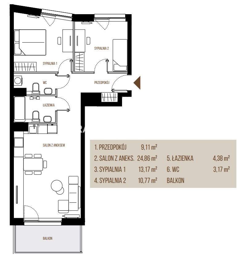 Mieszkania o powierzchni od 39 m² do 114 m²