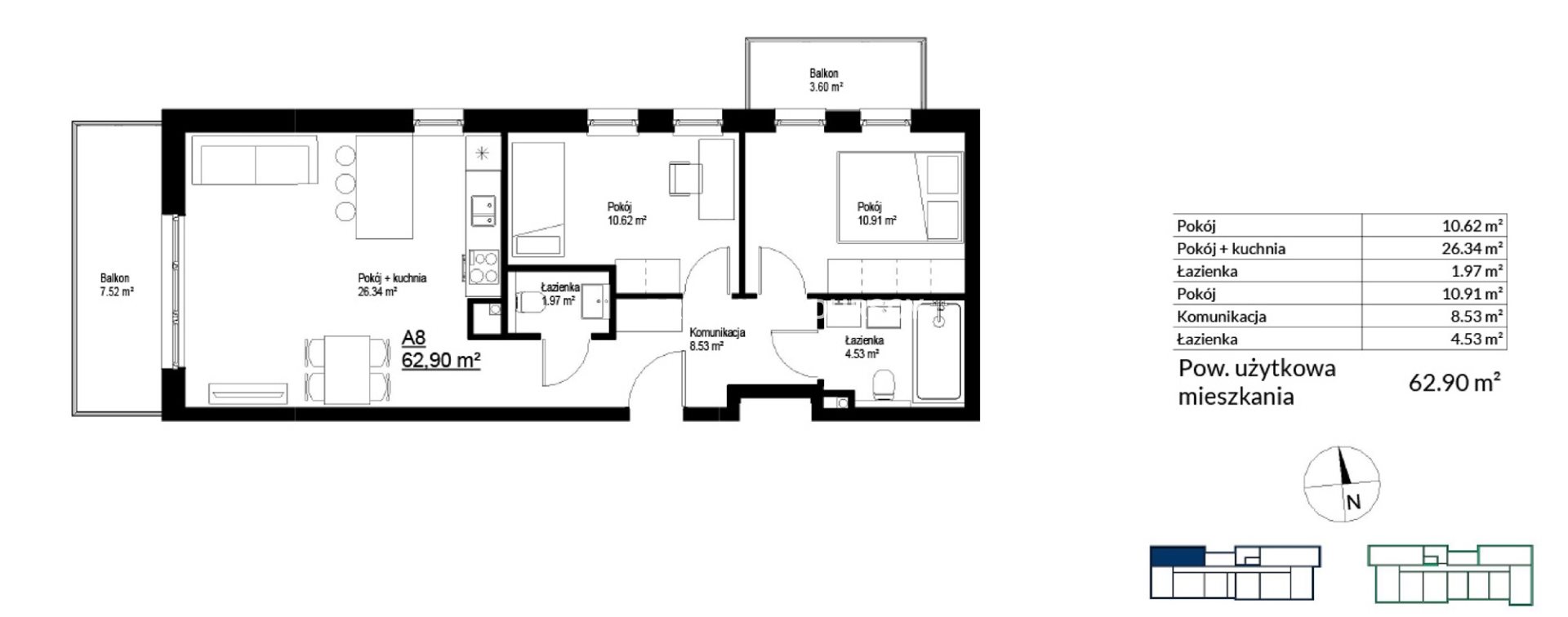 Dostępne mieszkania 2, 3 oraz 4 pokojowe w metrażach od 32m2 do 72m2