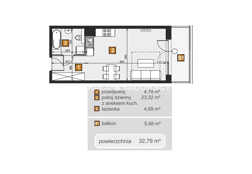 | Pow. użytkowa: | 32.79 m2 |