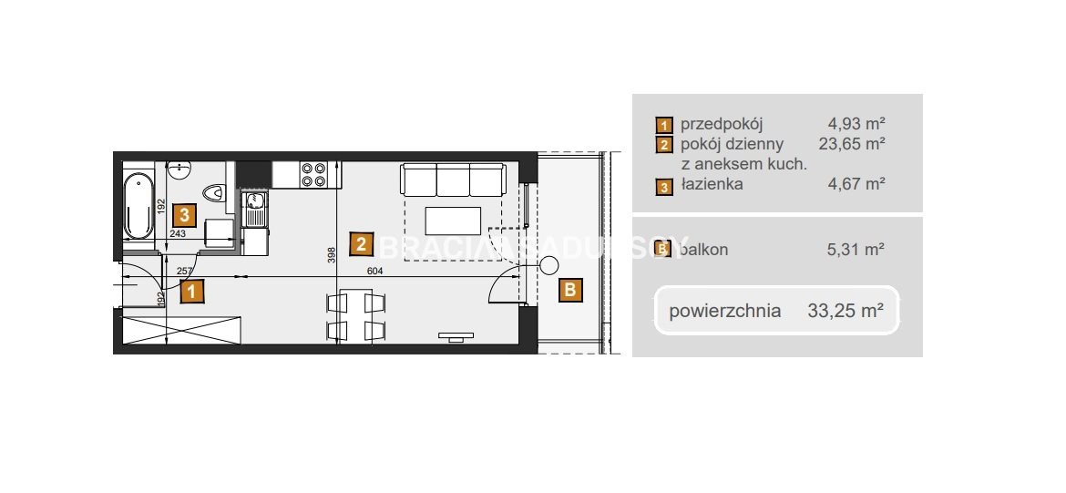 | Pow. użytkowa: | 33.25 m2 |