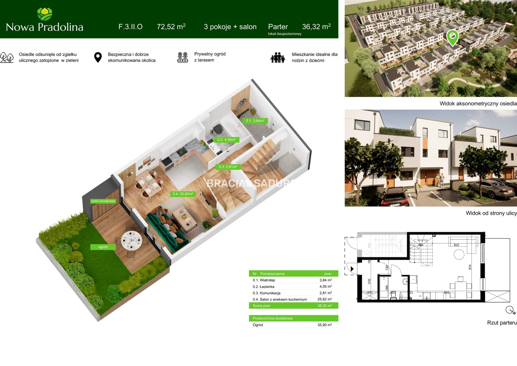Na sprzedaż przestronne, dwupoziomowe mieszkanie o powierzchni 72,52 m², położone na parterze i 1. piętrze nowoczesnego osiedla „Nowa Pradolina” w Tarnowie. Do mieszkania przynależy prywatny ogródek z komórką narzędziową o powierzchni 35,90 m² , idealny do rekreacji i odpoczynku.