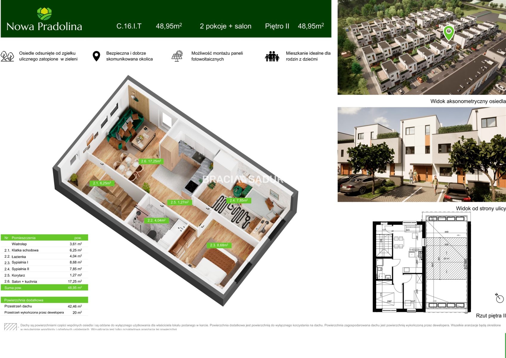 Opis mieszkania - 48,95 m² + TARAS 42,46 m²