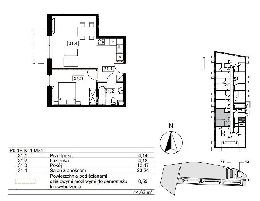 | Pow. użytkowa: | 44.45 m2 |