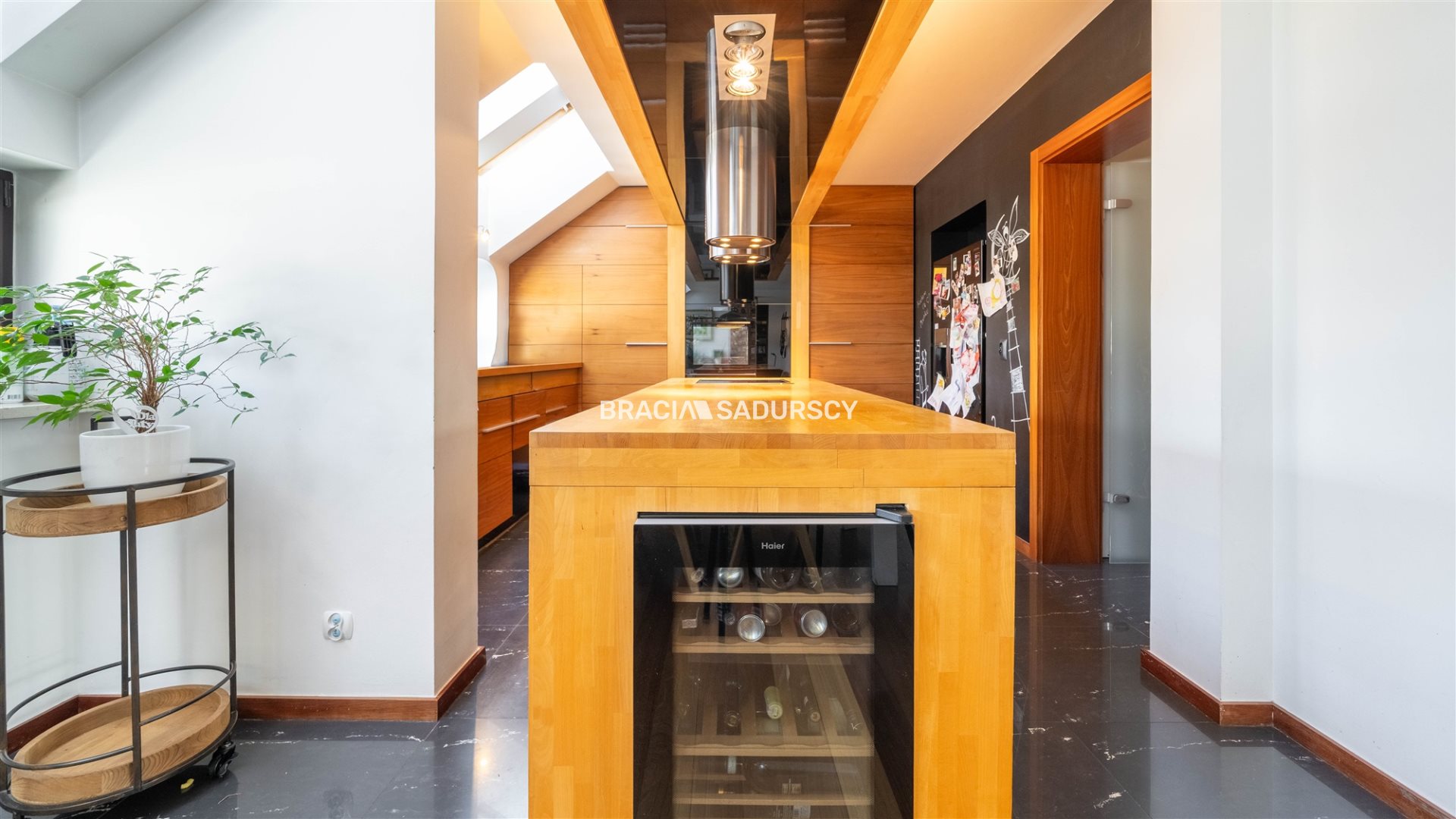 Mieszkanie sprzedawane jest w stanie dobrym, do lekkiego odświeżenia . Kuchnia zabudowana jest ładnymi drewnianymi meblami, ma dużą, wygodną wyspę, wyposażenie obejmuje lodówkę, zmywarkę, piekarnik, lodówkę na wino. Na podłogach w salonie i pokojach leży parkiet z drewna egzotycznego. Salon jest funkcjonalny i przestronny, przechodzi w przylegającą do kuchni jadalnię. W łazienkach zainstalowano ogrzewanie podłogowe oraz system odparowywania luster. Okna są drewniane. W mieszkaniu znajduje się nowy, dwuletni piec gazowy, bio-kominek, alarm, wideodomofon.