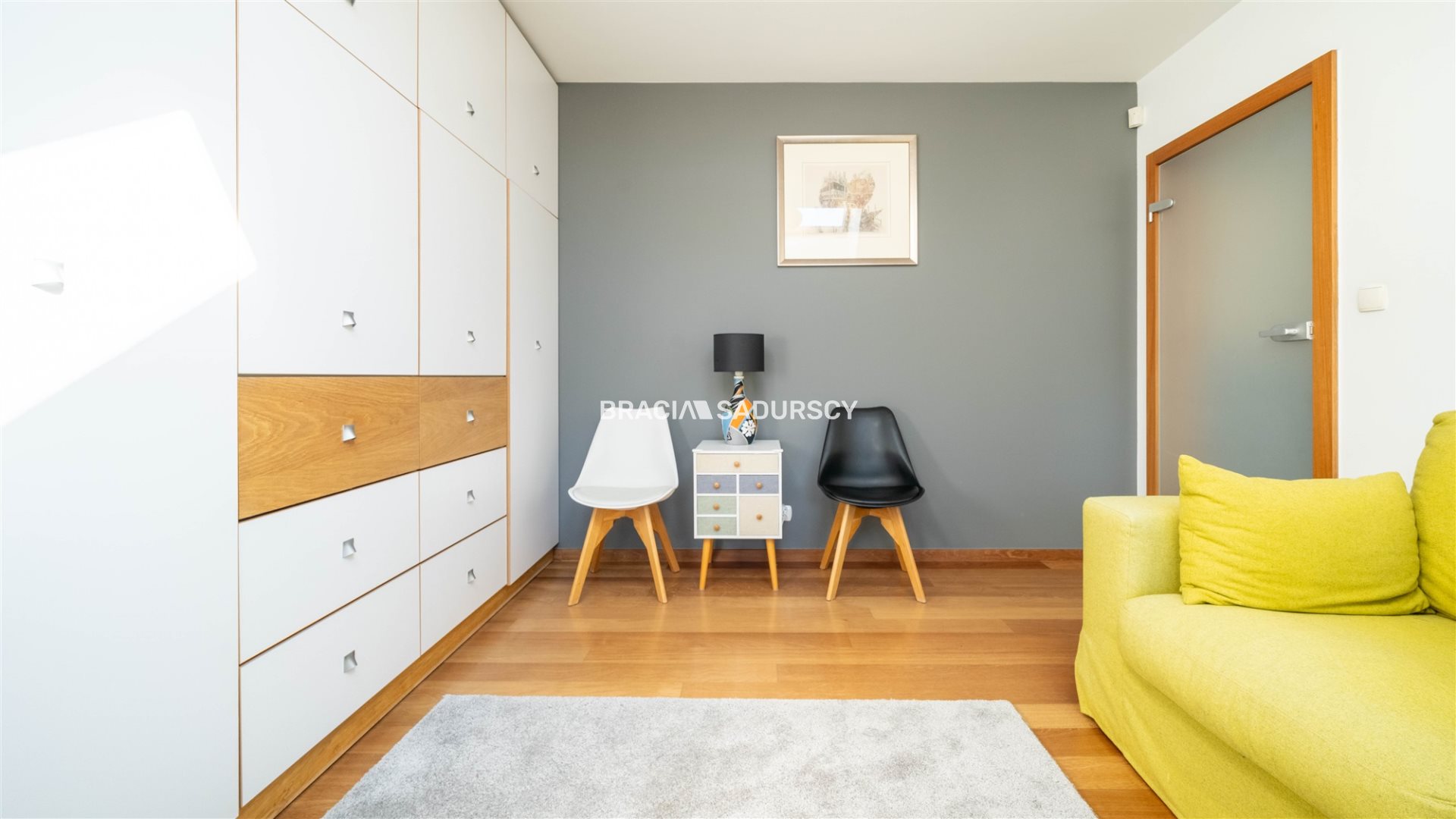 Na pierwszym poziomie do dyspozycji jest salon, otwarta kuchnia, dwa pokoje, łazienka, pralnia, pomieszczenie gospodarcze. Na drugim poziomie znajdują się dwa pokoje, łazienka, toaleta, korytarz oraz duży, taras z południową ekspozycją. Całość może stanowić duże mieszkanie z czterema sypialniami, idealne dla rodziny.