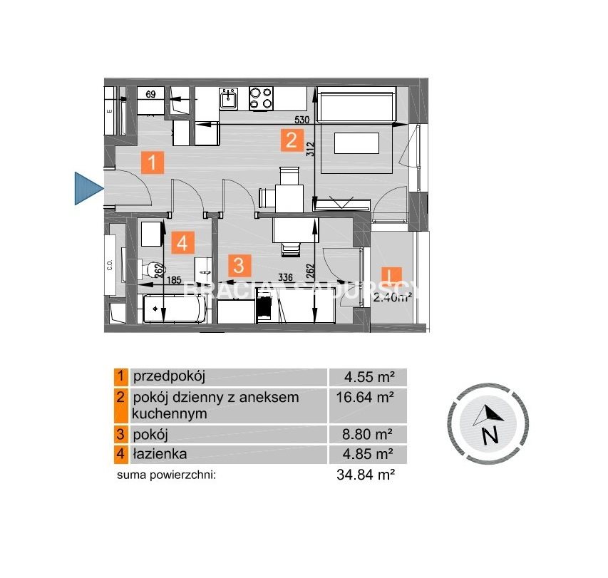 Mieszkanie dwupokojowe z aneksem Ruczaj