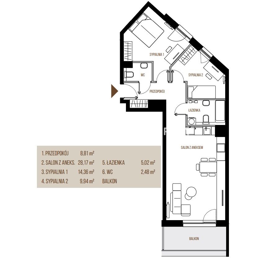 Osiedle FI, Podgórze, 3 pokoje z balkonem